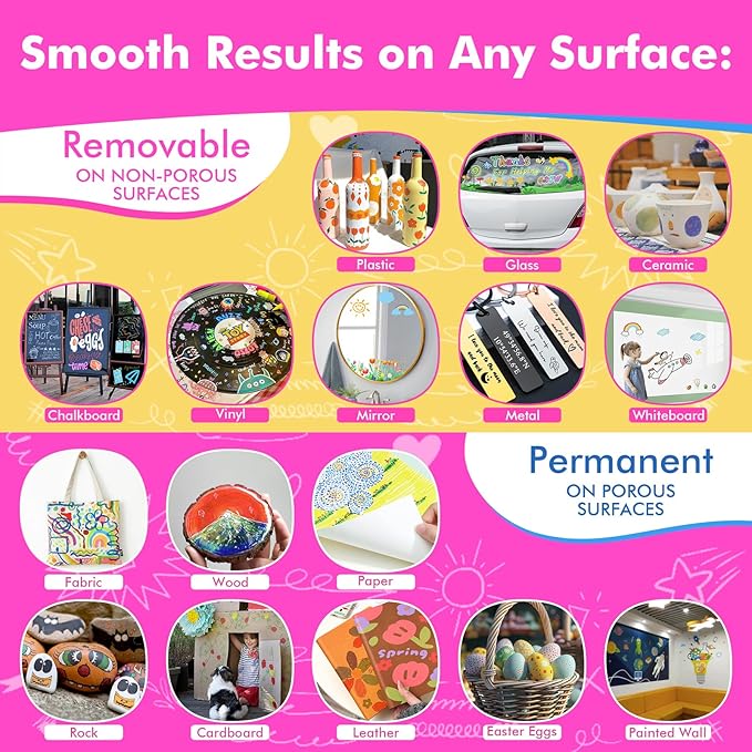 - Versatile Use:The window markers are designed for writing and drawing on cars,windows,glass,metal,plastic and other non-porous surfaces.Never use any chalk on poor quality porous chalkboards.Test in a corner first.