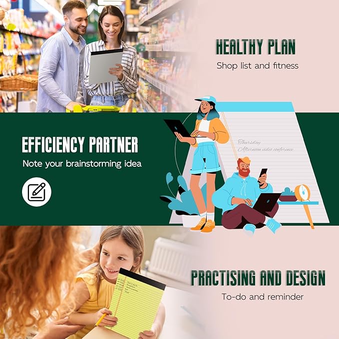 - 【Wide Range of Applications】Yellow legal writing pads used for daily writing, the 8.5 x 11 perforated edge yellow wide ruled papers are suitable for students, teachers, home, school or office, restaurant servers. You can create reminders, to-do lists, notes and more with the 8.5 x 11 inch legal pad wide ruled. NOTES: These pads are NOT STICKY.