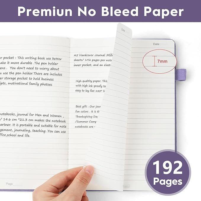 • 【Hardcover Leather Journal Notebook】The A5 Leather notebook is made from high quality vegan leather, no animals were harmed, a comfortable touch. The durable, water-resistant hardcover protects your notes and provides a stable writing surface. The thread-bound binding allows the journal to lay flat for easy writing.