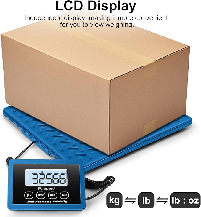 Fuzion Shipping Scale, 440LBs x 10g Postal Scale, Durable Alloy Steel Platform, Heavy Duty Scale for Packages, Postage, Luggage