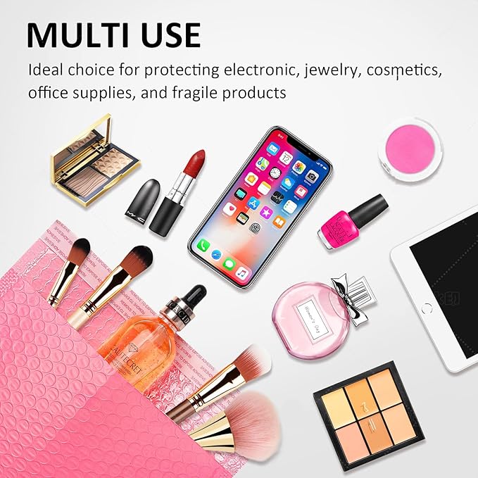 - Large Double-layer Bubble Mailers Perfect Dimensions: The hot pink large big bubble mailers outer 12.9x18'' inches usable size 12x16 inches double-layer padded bubble mailers, perfect size for medium big items like jewelry, makeup, cards, cd, lips, photos, books, clothing and homes office supplies business packing