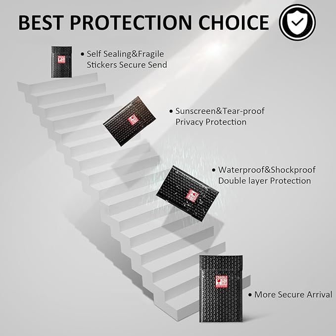 - Bubble Envelopes & Fragile Stickers Use Efficient: Bulk pack of 25 bright black bubble mailers with 24 fragile stickers for cost-effective shipping solutions for homes and small businesses