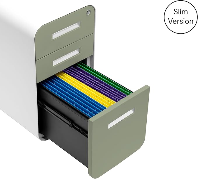 Laura Davidson Furniture Stockpile Slim 3-Drawer Mobile File Cabinet with Lock - Under Desk Metal Filing Cabinet, Legal/Letter File Folders, Wheels & Stationary Feet, Assembled, Sage Green