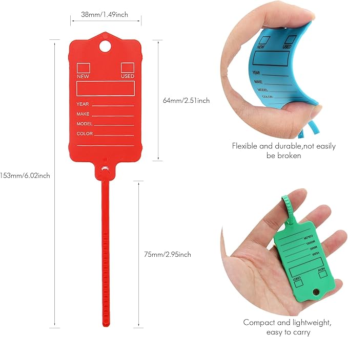- 【Sturdy and Built to Last】: This auto key tags are made from high quality PP material, sturdy, flexible, water proof, and dust proof, not easy to break or wear. Ensuring they can withstand daily use. Package includes 100pcs mixed key tags and one marker pen