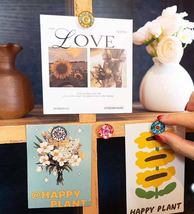 - Decorative Thumb Tacks: These thumb tacks are made of glass and tacks, which are made of smooth glass, it is not deform and can be used for a long period of time, even if they are dropped from a high place, push pins are still intact!