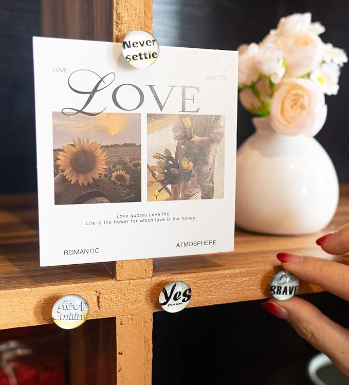 - Motivational Decorative Push Pins: These Decorative thumb tacks are printed with various inspirational quotes that remind us of the importance of perseverance and hard work every time we use them, provide psychological comfort and support, and unconsciously sublimate our expectations and hopes, encouraging us to become a better version of ourselves.