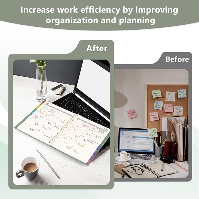 - MONTHLY PLANNER: Monthly page includes previous/next month views, holiday reminders, day countdown, lined daily blocks, notes section, ample writing space for efficient monthly tracking. Colorful monthly tabs enable easy flipping, enhancing organization