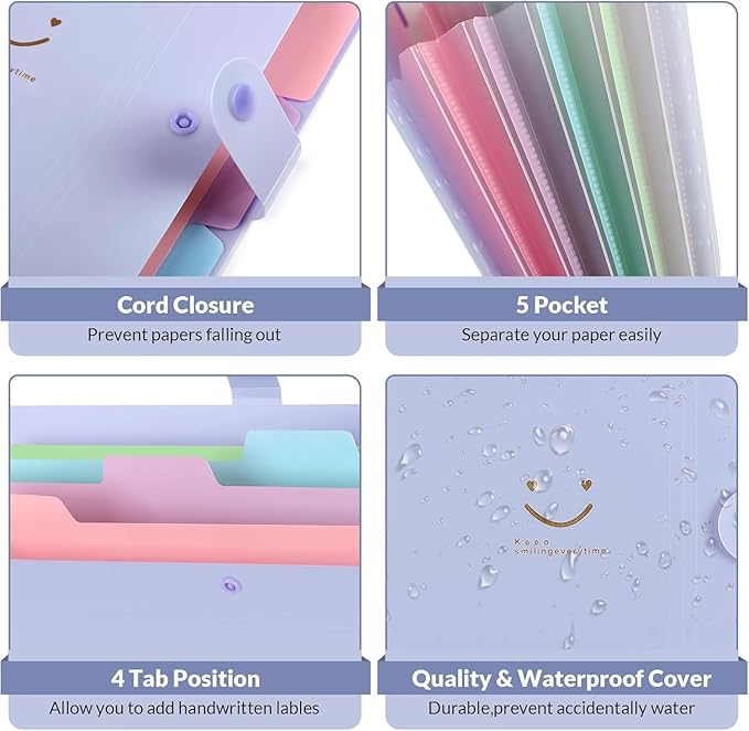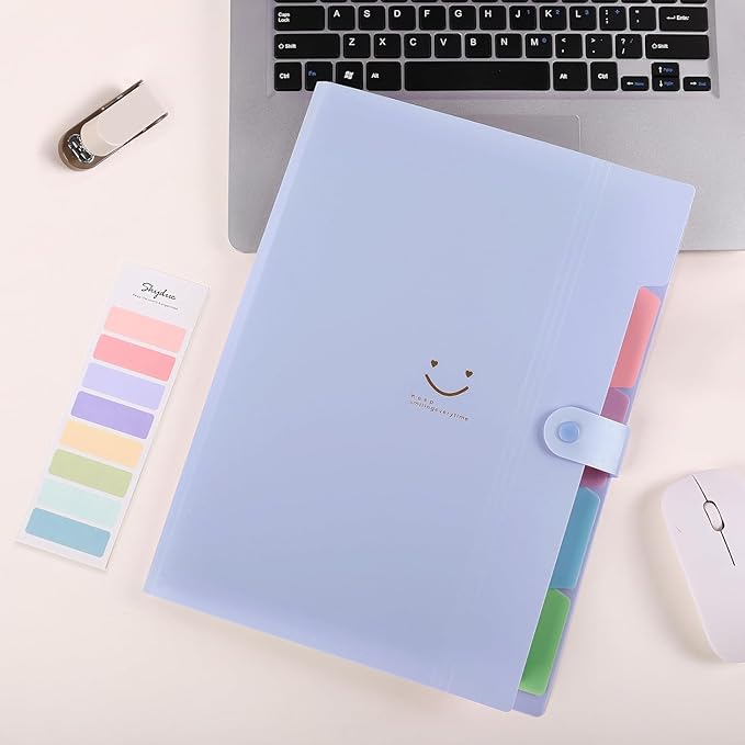 - Skydue file organizer with 5 pockets , 4 tab positions and 8 colored label stickers provide easy organization for multiple classes or projects.