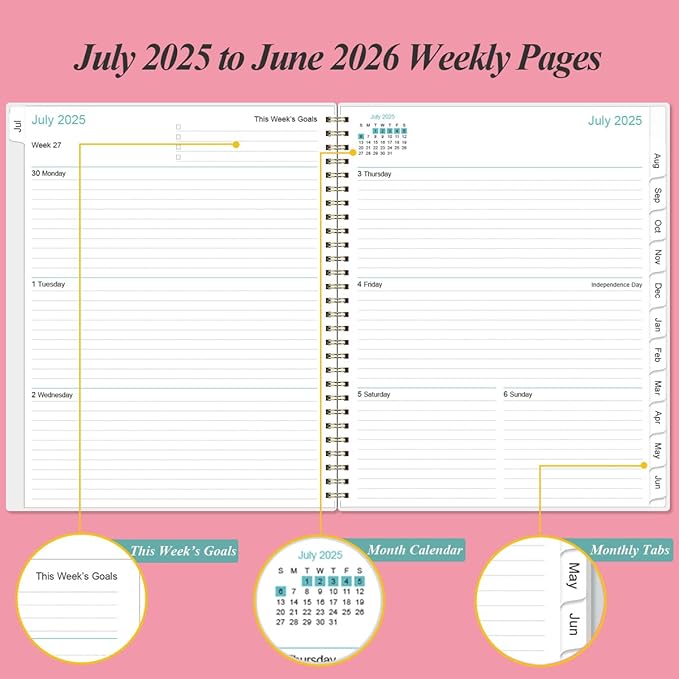 - 2025-2026 Planner – From July 2025 - June 2026, this planner 2025-2026 covers 12 months of weekly and monthly pages, great for an easy year-round planning and organizing. The size is 8.5" x 11", suitable for your backpack or work bag.