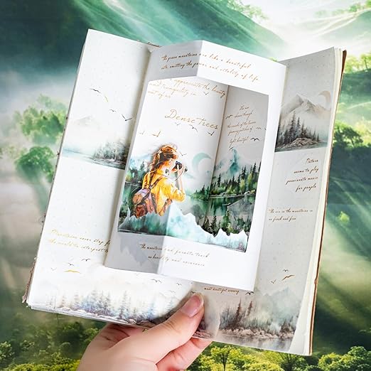 - Scenic Nature Designs: Features 6 washi rolls with poetic forest, mountain, and seasonal themes, enhanced by delicate text. Brings immersive calm and visual poetry to journals and scrapbooks