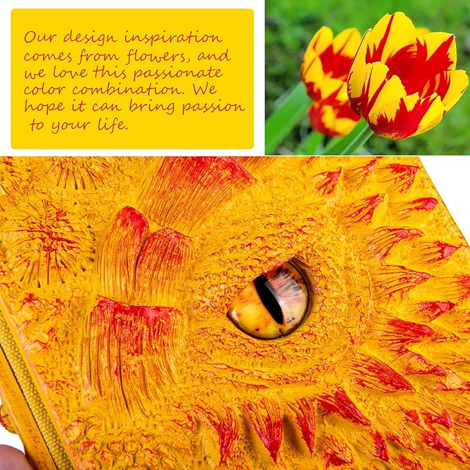 3D Dragon Eye Embossed Journal,Resin Engraving Notebook,Dnd notebook for Dragon Lovers ,Blank Paper,Hardcover Travel Notepad for Writing,Sketchbook,Collection,Gift,Decoration A4 and A5 Size (A5-Yellow)