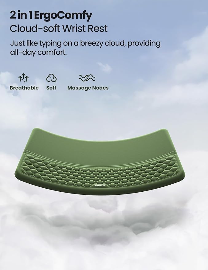 - 【Indulge in Cloud-Like Softness】Sink your wrists into the sumptuous embrace of our super soft memory foam desk wrist pad. It's like floating on a cloud—effortlessly cushioned, with every keystroke supported by plush comfort that banishes wrist pain and fatigue. The breathable and moisture-wicking lycra fabric allows air to circulate freely, keep your wrists cool and dry.