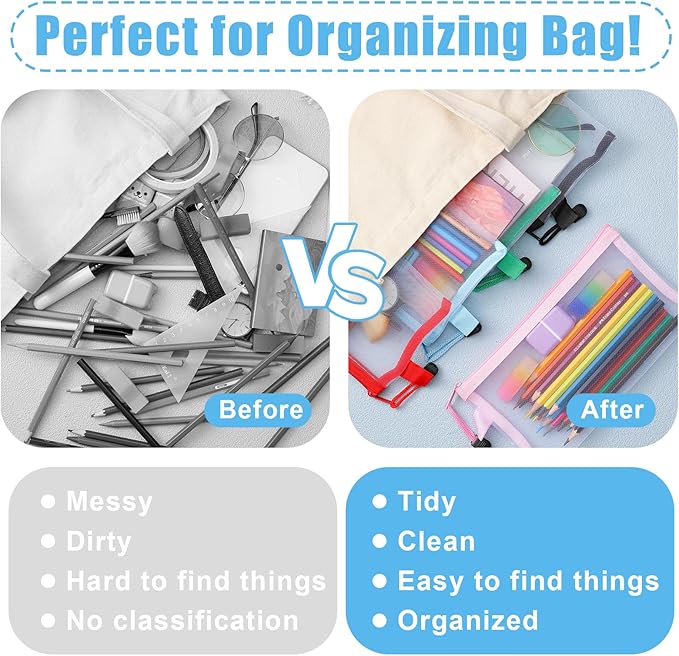 - Functional and Practical: the mesh zipper pouch comes with a zipper design, which allows you to pull it up when you are not using it to reduce items falling or being lost, very useful to use; Besides, its color also allows you to see the items in it quickly