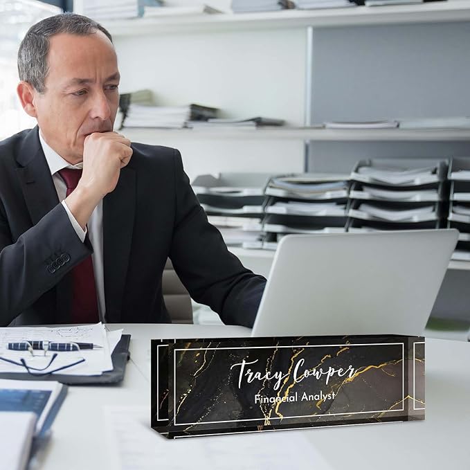 • 【Customize Your Professional Identity】Click "Customize Now" to design your unique personalized name plate. Choose from elegant art fonts and modern designs, then enter your name, title, or any custom text and date. Create a beautiful, elegant, and well-made desk name plate that makes you stand out in any office setting.