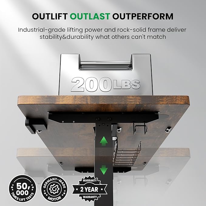 - Reliable&Durable : This electric standing desk lifting power enough to fully loaded office and game equipment up to 200lbs. 50000 times lift tests for years of using.