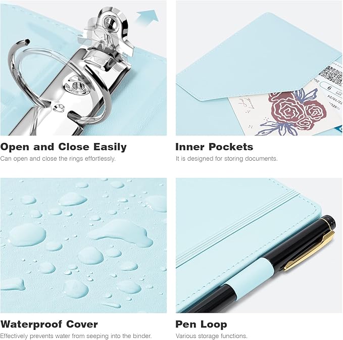 - 【Mini Leather Binders】Sized at 8.5 × 9.5 × 3.2 inches, three ring binder is perfect for work or school. Clipboard binders with dividers fit letter-sized 5.5" x 8.5" paper and are suitable for most common paper notes.