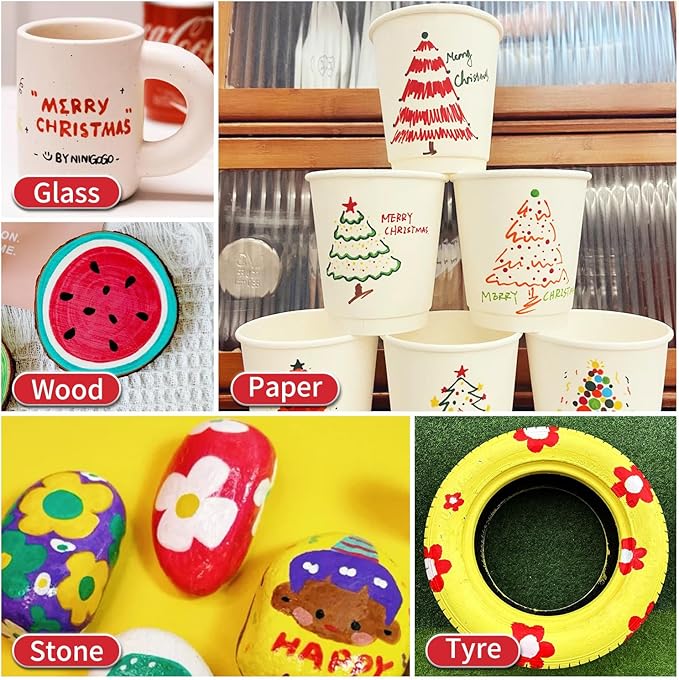 - Quick-Drying: Featuring quick-drying oil-based ink that resists water, fading and abrasion. The oil based paint pens is glossy. For Instant gratification: Get your projects completed in record time with our quick-drying markers, Drying time 45 - 60 seconds