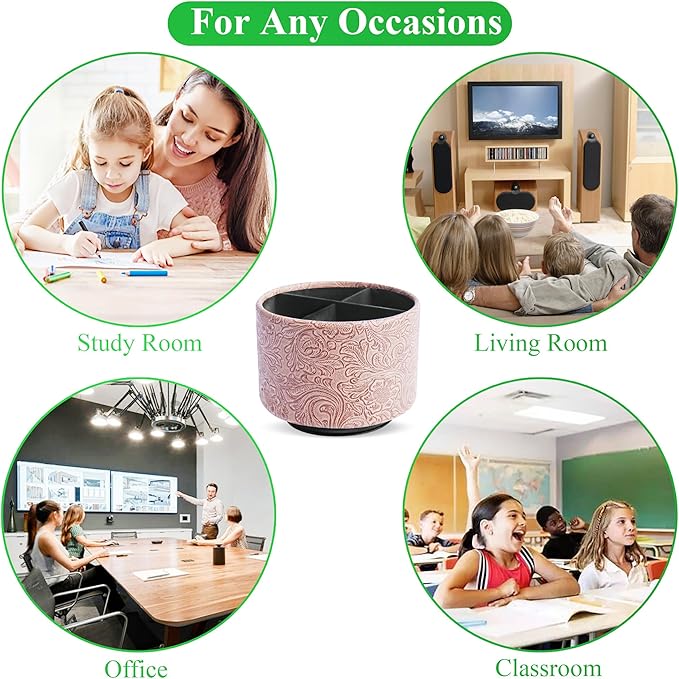 - ✎360° Revolving Design: You can freely rotate the pen holder steadily left and right,unique spinning base design allows easy access to items from any directions.The non-slip pads on the bottom keep it stay in place when rotating.