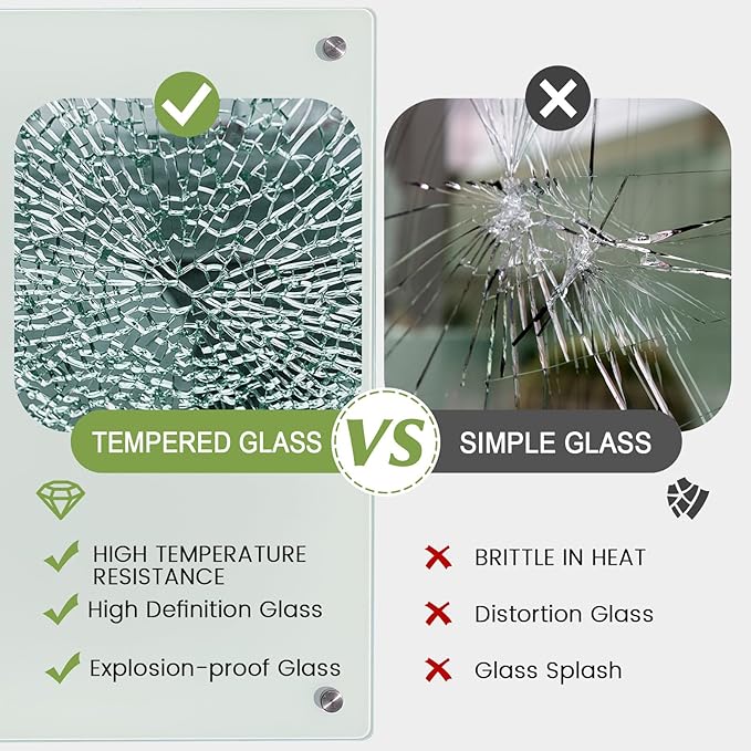 - Shatter-Safe Safety Design:Heat-treated tempered glass breaks into small, blunt granules (not sharp shards) if damaged, ensuring added safety for families and busy workspaces.