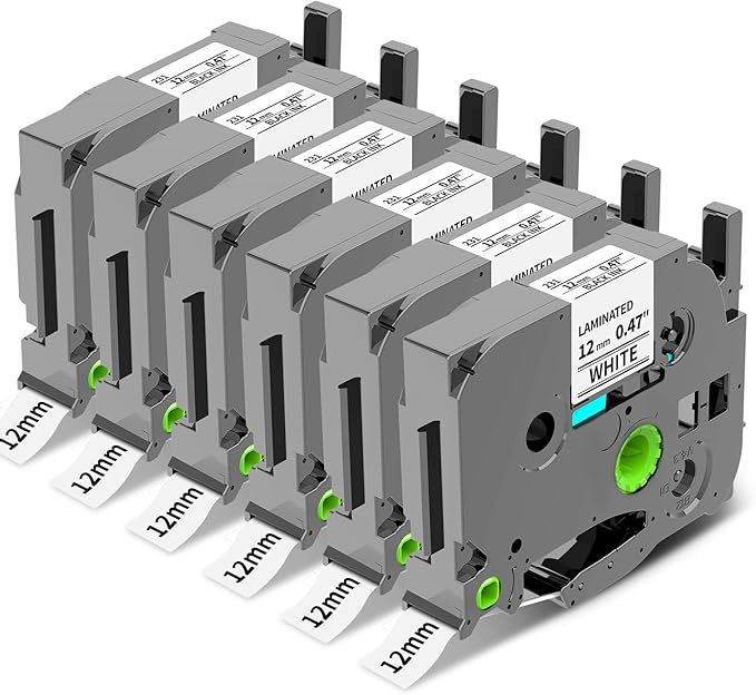 - Long-Lasting 12 mm 0.47 laminated white tz tape, strong durability and longevity, withstands water, fade, sunlight and high/low temperature from-22° (-30°C) To 258° (120°C)