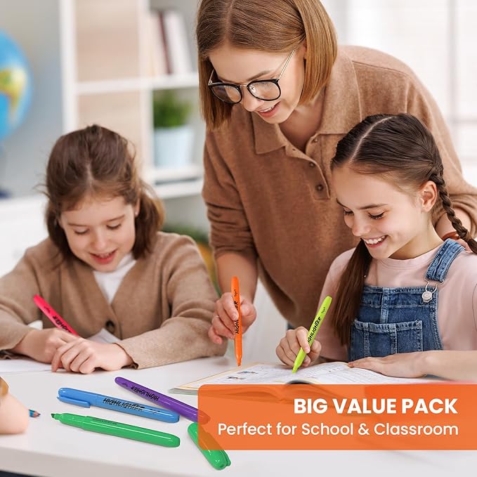 - Big Value Pack - Includes 30 vibrant highlighters in 6 assorted colors—pink, orange, yellow, green, blue, and purple. Easily color-code notes and materials for better organization, making it ideal for both study and work.
