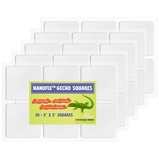 Perco Nano Double Sided Tape Squares, Clear Tape, 30 2"x2" Pre-Cut Mounting Squares – Strong Adhesive for Medium Items, Wall Décor, Mirrors, Posters, Photos, Crafts, Home, Office, DIY Projects