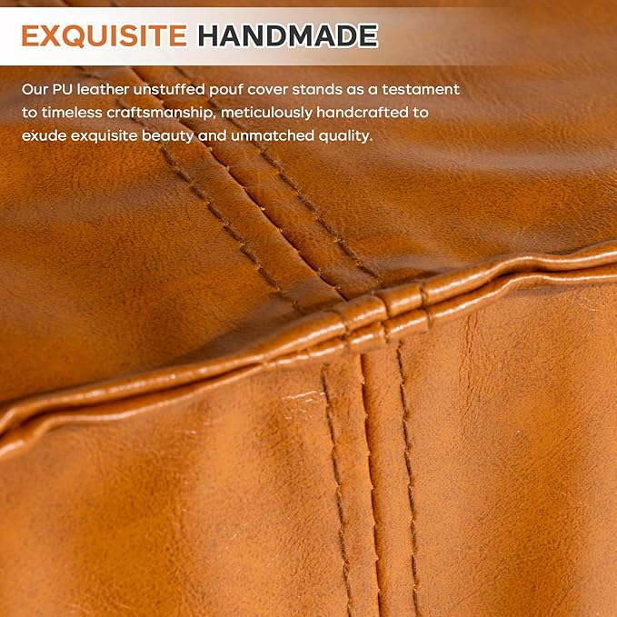 - 【PREMIUM FAUX LEATHER】: Crafted with high-quality, water-proof outdoor ottoman faux leather, this ottoman cover unstuffed pouf cover offers durability and style.This pouf ottoman cover footstool provides great comfort for your tired feet. The footstool helps keep your feet elevated, relieving pressure on your ankles and preventing swelling. It is the ideal footstool for your living room!