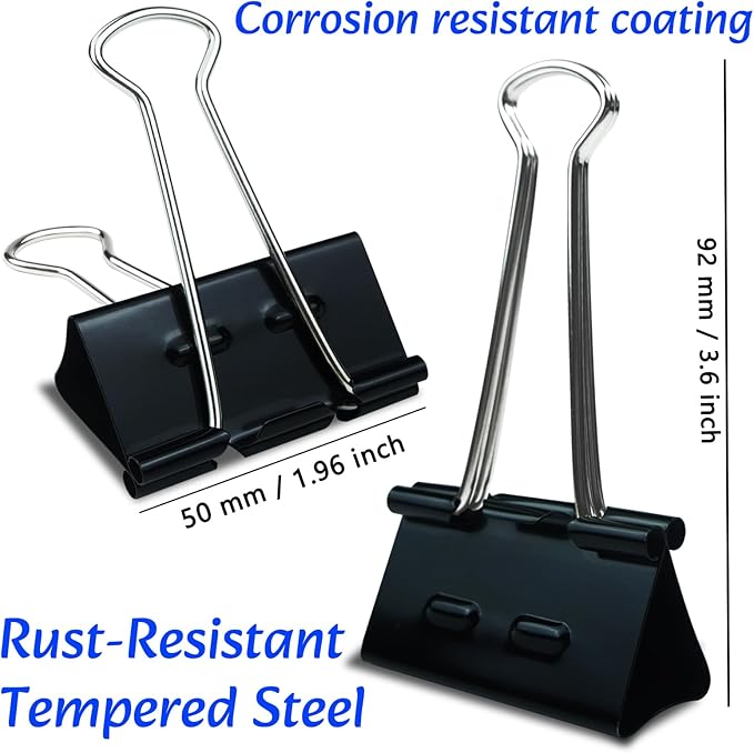 - Upgrade Clips: These jumbo binder clips are 2 inch length with 1.2 inch capacity, binder Clips are significantly easier to open compared to traditional binder clips, making them ideal for individuals with reduced hand strength.