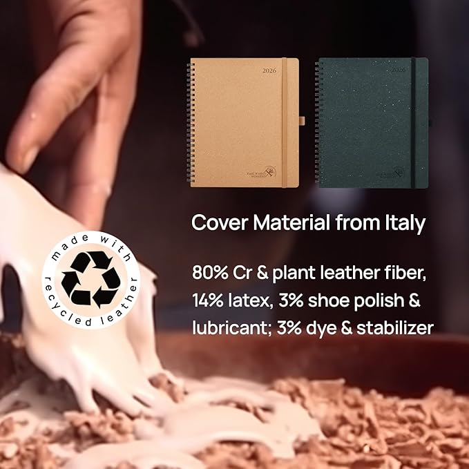 - 100% RECYCLED PLANNER:The cover and inner pages of this 2026 planner are made from renewable paper pulp imported from Italy. With a commitment to the protection of the earth, this planner helps to contribute to the sustainability of our environment.
