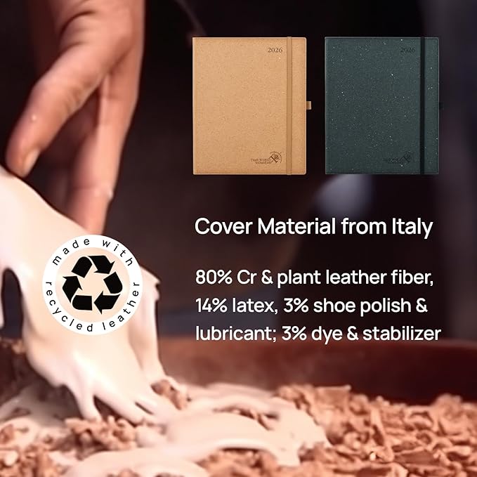 - 100% RECYCLED PLANNER:The cover and inner pages of this 2026 planner are made from renewable paper pulp imported from Italy. With a commitment to the protection of the earth, this planner helps to contribute to the sustainability of our environment.
