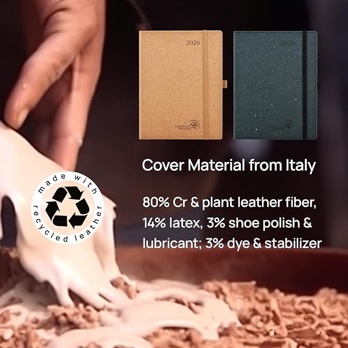 - 100% RECYCLED PLANNER:The cover and inner pages of this 2026 planner are made from renewable paper pulp imported from Italy. With a commitment to the protection of the earth, this planner helps to contribute to the sustainability of our environment.