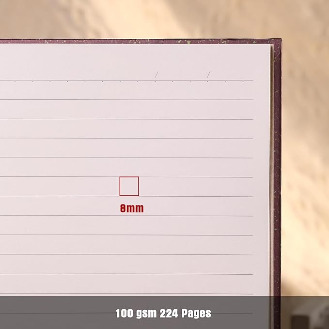 - 100GSM 224 Pages: Selected 100 gsm of high-density paper, thick and wear-resistant and strong anti-permeability, the back of no blotting trouble, long-lasting preservation of clear handwriting. 224 pages of ample space to carry daily inspiration, travel records or long-term journals for in-depth writing and creativity.