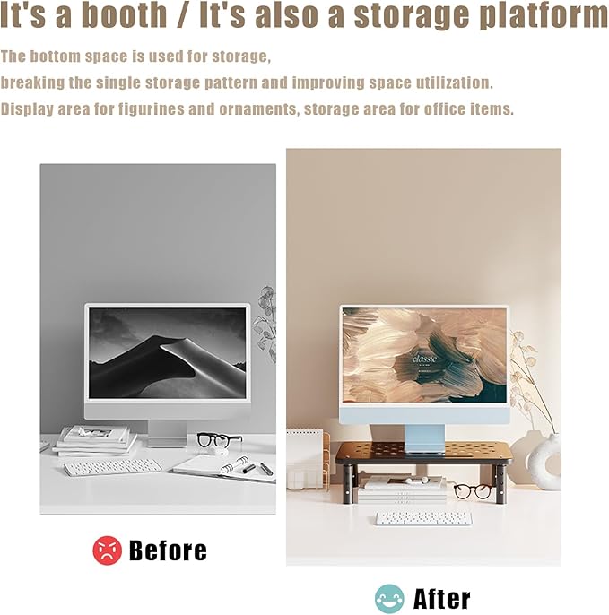 - 5:Easy Assembly,Tools are not required for the monitor stand assembly. Simply screw the four legs onto the preassembled bolts of the monitor stand riser platform. Have your desk organized for more productivity in no time.