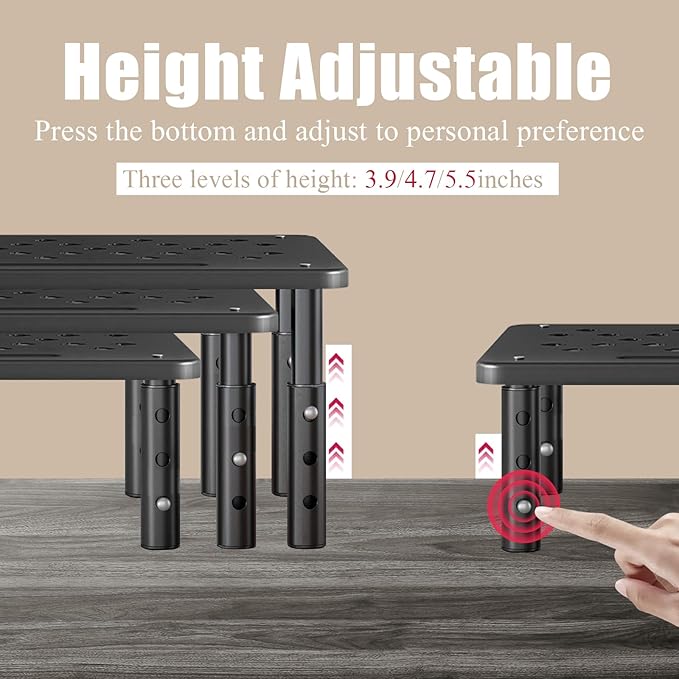 Computer Monitor Stand for Desk,Laptop Stand,Printer Stand,Adjustable and Stackable Height Increasing Storage Rack Suitable for Office, Home, and School Supplies,Black