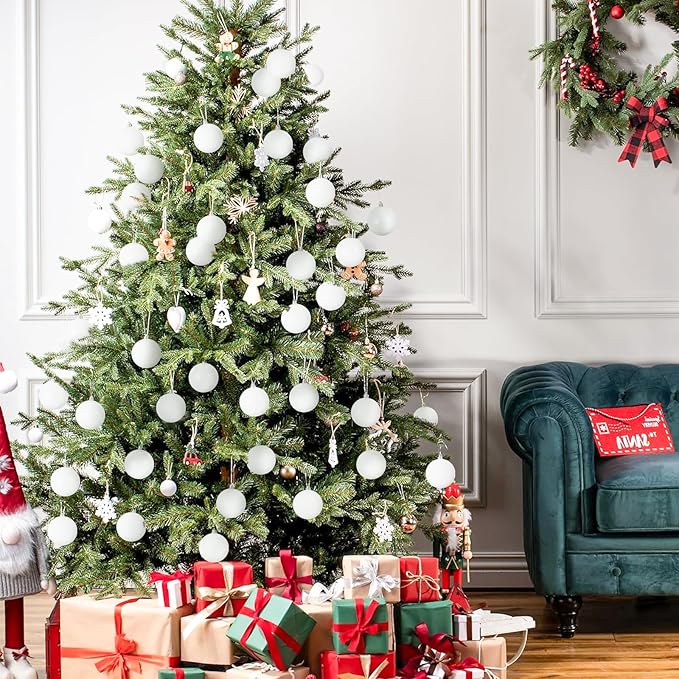 30ct Christmas Ball Ornaments, 2.36" Shatterproof Christmas Tree Decorations, Perfect Hanging Ball for Indoor/Outdoor Holiday Party Decor (White)