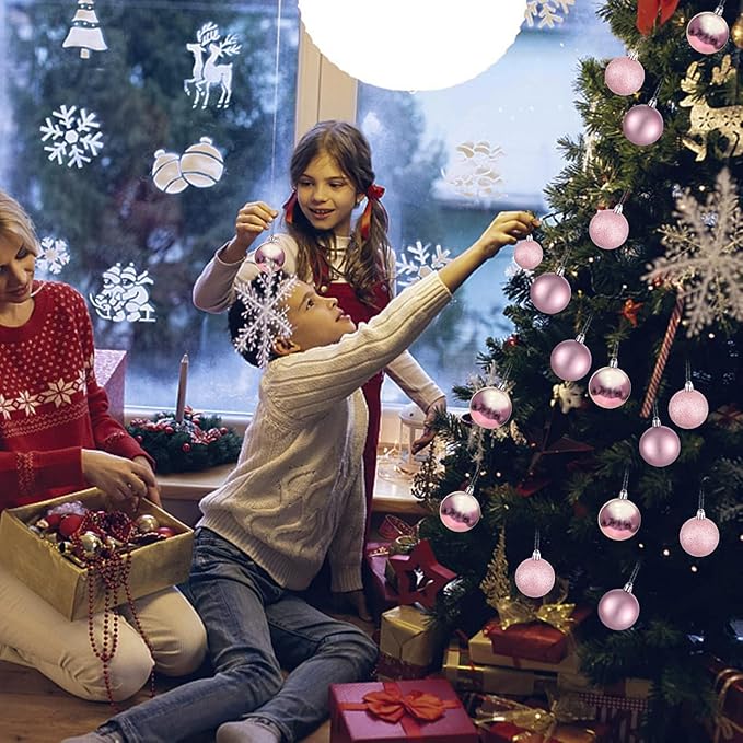 30ct Christmas Ball Ornaments, 3.15" Shatterproof Halloween Tree Decorations, Perfect Hanging Ball for Indoor/Outdoor Holiday Party Decor (Pink)