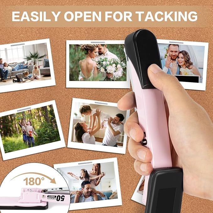 - 【Versatile Stapling Options】- Switch between permanent and temporary stapling by reversing the anvil, ideal for long-term documents or quick edits. Plus, the 180° open design makes tacking papers onto corkboards a breeze.