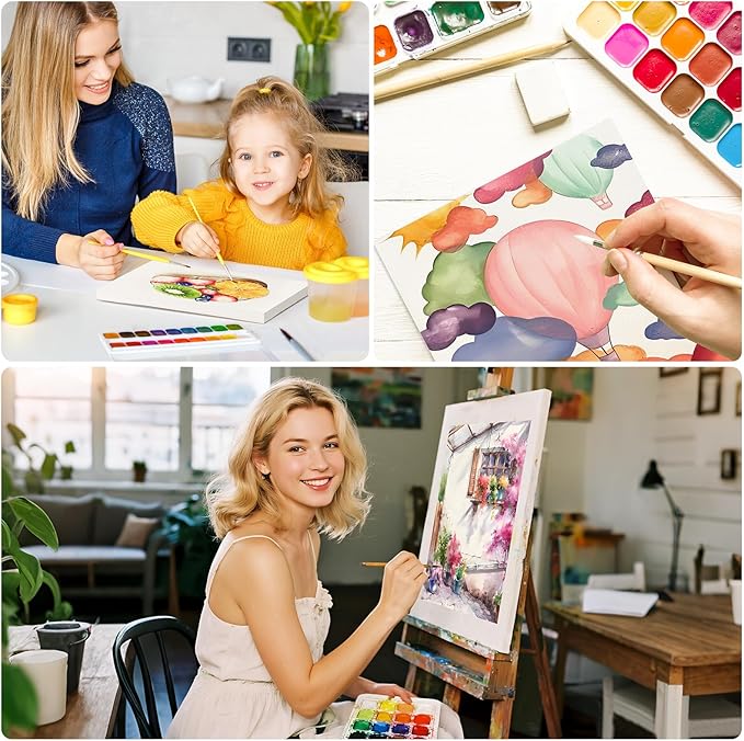 - 【Premium & Cold-Pressed Paper】 Heavyweight 140lb/300gsm natural white paper with a slightly textured surface optimizes watercolor techniques. Acid-free, pH-neutral sheets maintain vibrant colors and prevent yellowing. Sturdy backing board protects your artwork.