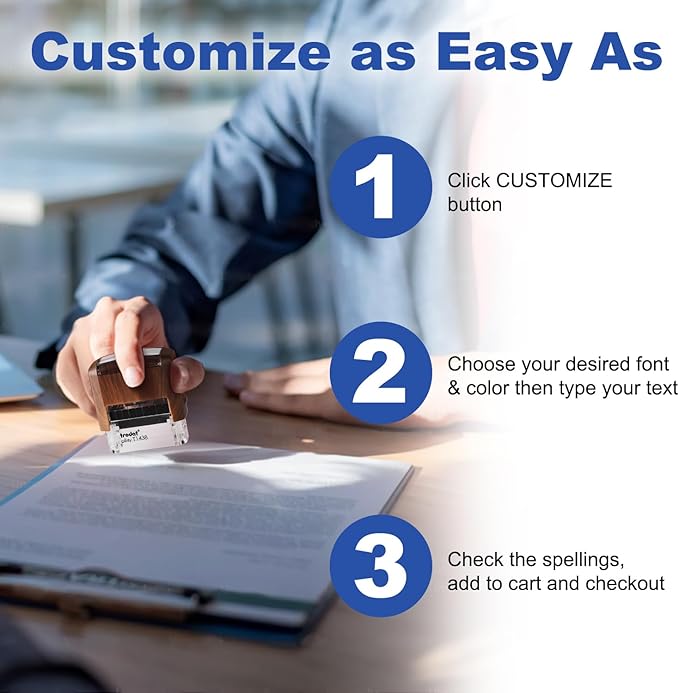 - Personalized stamp:stamp are available in 3 sizes, 5 colors, multiple fonts and for you to choose from.Enhance your business stamp with your preferred text, font, and color for a personalized finish on letters and packages.