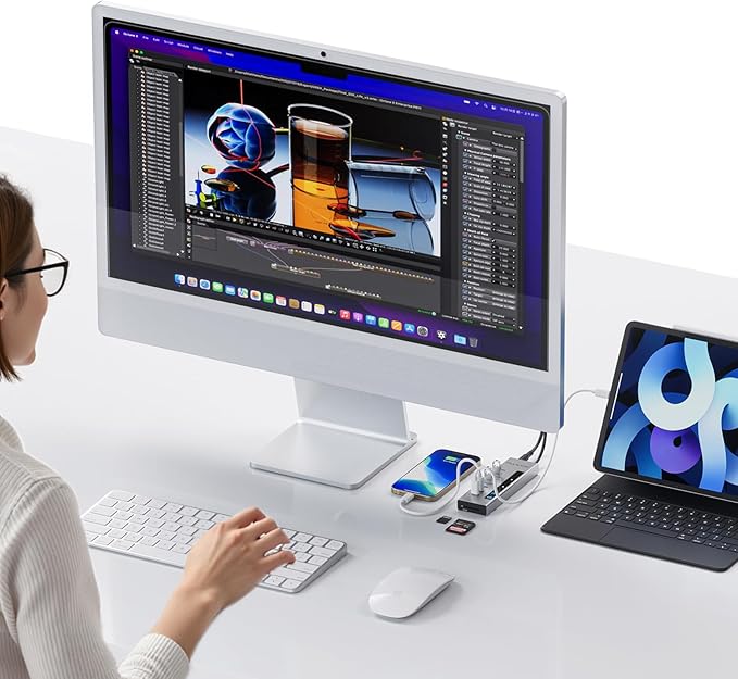 - 【75W Power Adapter & PD Charging Ports】USB C Hub Powered is equipped with a 72W (24V/3A) power adapter, supports charging 1x45W or 2x24W through PD charging port. It can power multiple USB devices simultaneously, ensuring secure and stable data transfer for all connected devices. 【NOTE】:All ports of the Powered USB C Hub do not support video output. USB-C PD ports only support charging, without data and video transmission. Please make sure the USB C port of your laptop supports transferring data when use with windows laptop.Due to the charging protocol of the Samsung, the usb c powered hub only support 24W Max charging for Samsung phones and tablets