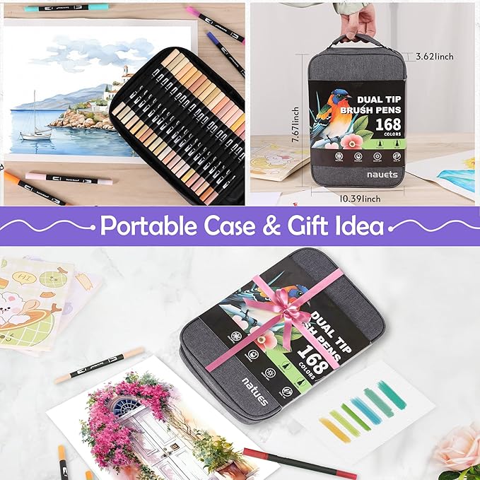 168 Colors Brush & Fine Dual Tip Watercolor Markers Set for Kids Adults Coloring Books No Bleeding Paint Pens For Drawing Note taking Planner Calligraphy Journaling Card Making Art Supplies