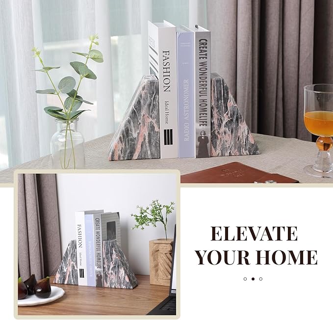 - 【Luxury & Elegant】Koville book ends are made of 100% natural high quality marble from Namibia. Each bookend has its own unique textures and colors, no two pieces are exactly the same, revealing the wonders of nature and will be an elegant addition to your tabletop decor