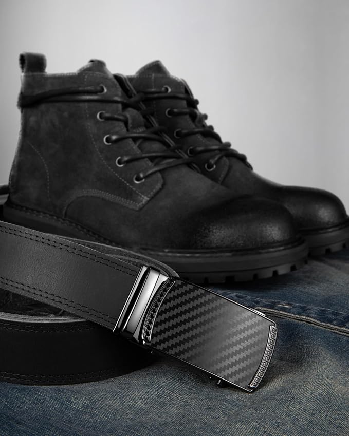 - MAXIMUM DURABILITY - Mens belts for jeans with genuine leather, presenting a high texture refined look, High-density stylish buckle is lighter and SCRATCH RESISTANT which is made to last.