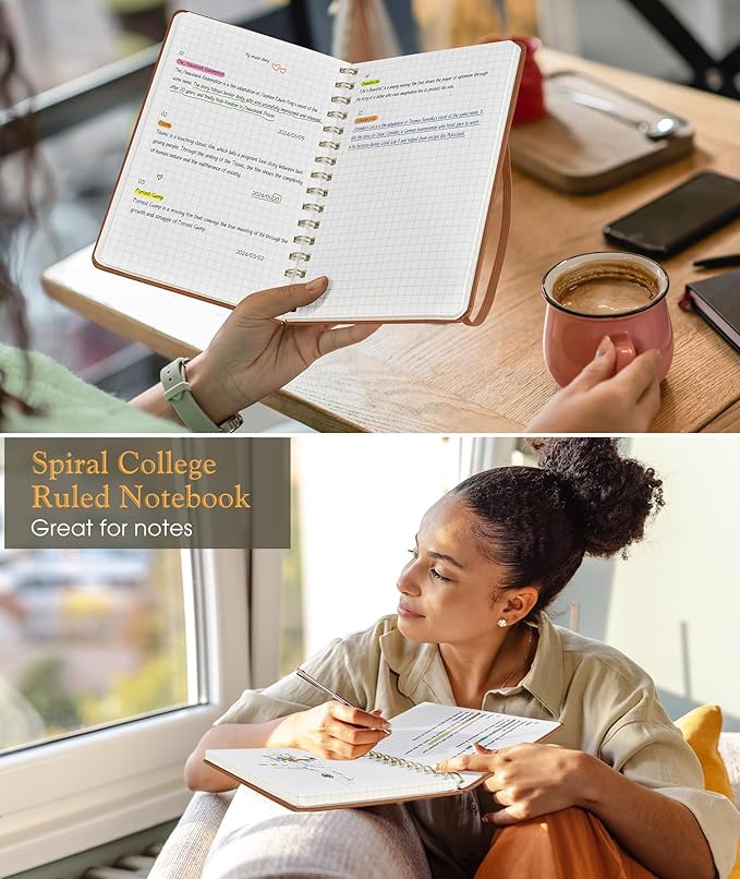 Graph Spiral Journal Notebook, A5 Hardcover Spiral Journals for Women Men, 100 GSM Graph Paper Notebooks, 150 Pages Spiral Bound Grid Notebook for Writing Note Taking Work 5.75" x 8.38", Brown