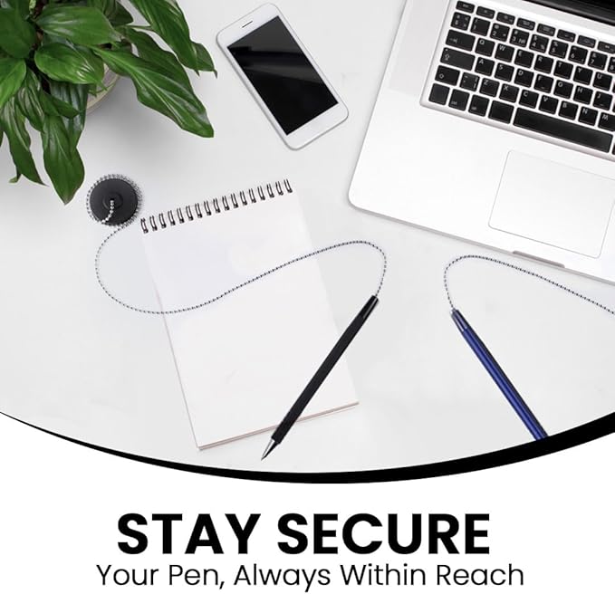- 【Strong Adhesive Holder】- This pen on a chain includes a durable adhesive base, ensuring it stays securely attached to desks, counters, or workstations