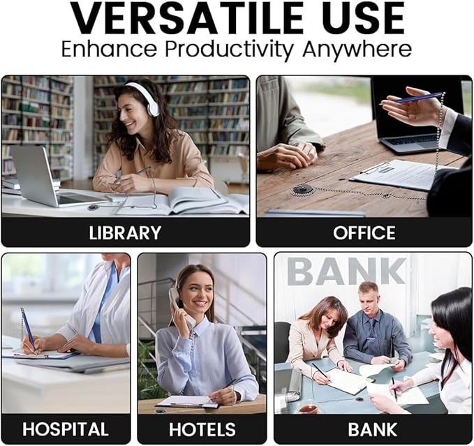 - 【Secure & Convenient】- Each pen with a chain and base is attached to a 23-inch retractable pen chain, keeping it in place at offices, reception desks, banks, and hospitals for easy access