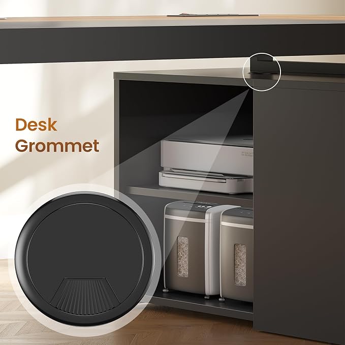 - 【Sturdy and Durable】Unlike ordinary desks, this executive desk features a 1.6-inch thickened desktop and solid metal legs, which is sturdy and durable. The adjustable feet can keep it stable on uneven floors. The desk's top and filing cabinet are made from FSC certified wood.