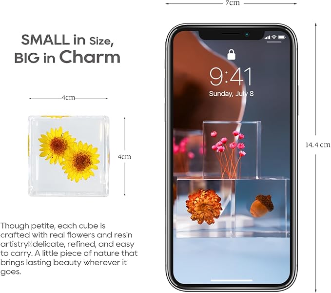 - Handmade with Real Plants: Each resin cube features real preserved flowers—not artificial prints. Every piece is handcrafted, making your flower paperweight truly one-of-a-kind and tastefully unique.