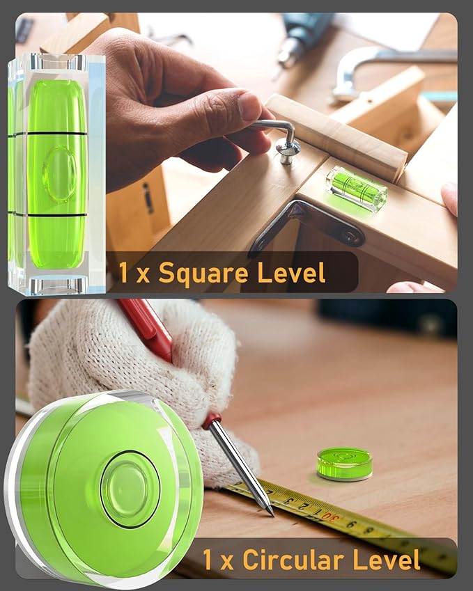 - MULTI-USE WOODWORKING TOOLS FOR VARIOUS APPLICATIONS: This carpenter pencil set includes a carbide scribe tool and a positioning center punch, perfect for precise engraving on tough surfaces such as metal, tile, glass, ceramics, and wood. In addition, the upgraded version of the carbide scribe tool also comes with 5 replacement tips, extending the life of your metal marking pen. In addition, the top of the metal marking pen has a magnetic function, which can help you quickly store nails, nuts and other parts during work. We also include a square level and a round level for use in different scenarios. Paired with a 4B eraser for easy error correction