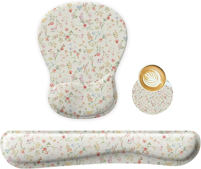 Wrist Rest Support for Mouse Pad Keyboard Set Circle Coaster Gaming Mouse Pad Ergonomic Gel Memory Foam Set for Computer, Laptop, Office, Pain Relief, Comfortably Typing Flowers KM-39